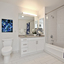 Large bathroom vanities with spacious built-in drawers.